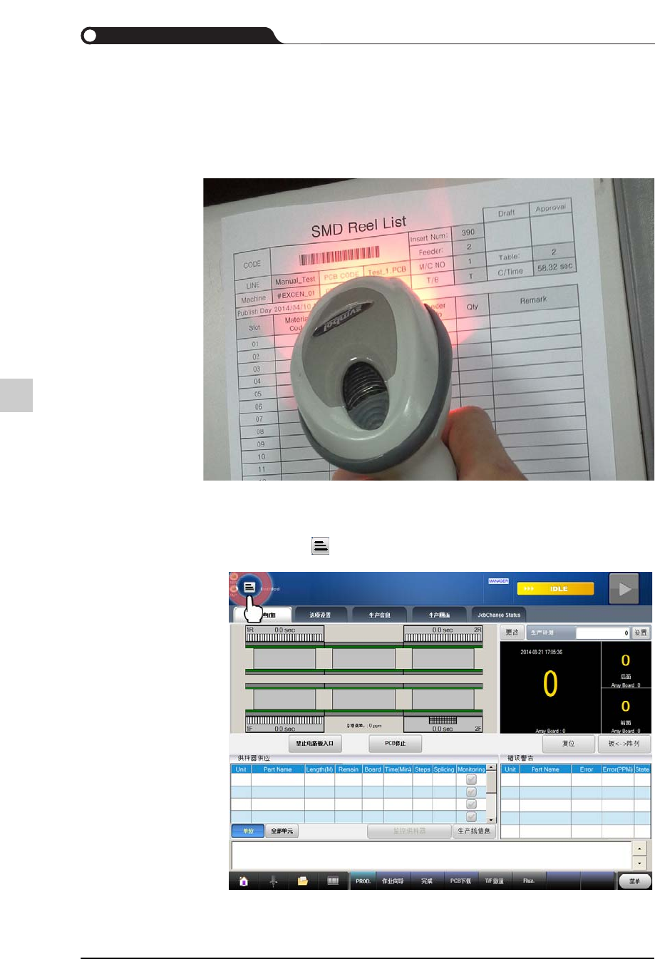 STEP1. 在设备的条形码扫描器扫描料盘列表的条形码。