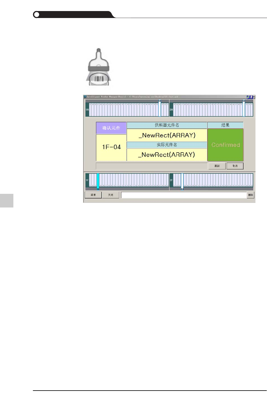 STEP2. 实行了‘ 确认元件’ 对话框时,扫描带式供料器的料盘条形码。