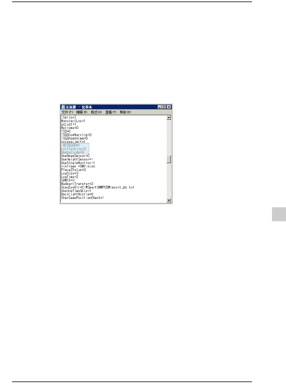 在记事本打开“C:\SmartSM\bin\”文件夹里的SmartSM.ini文件后,在[Option]