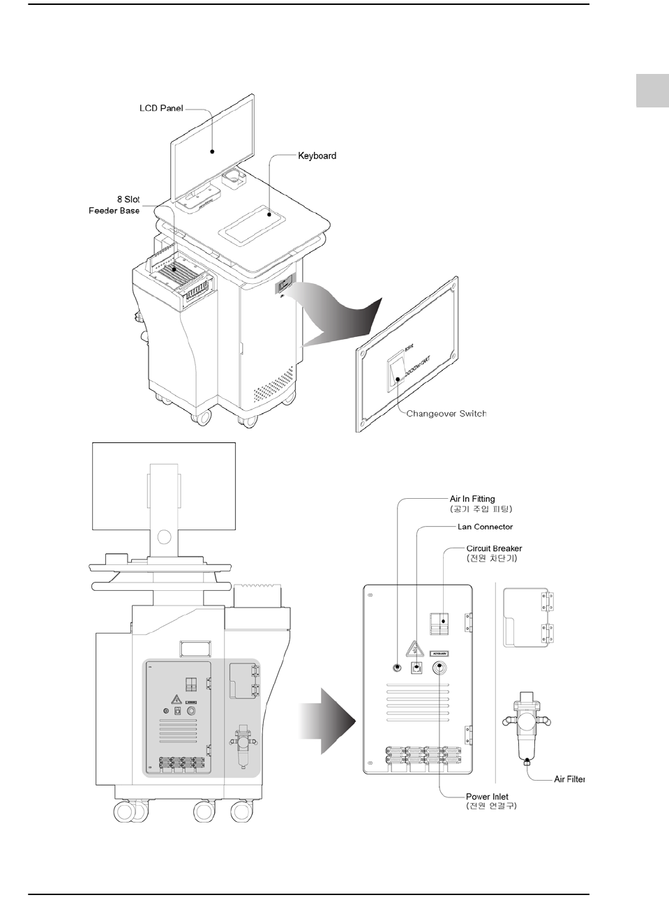 2-44 {TzYG|˅Gn {TzYG|˅Gn 2.4.2. 安装 2.4.2.1. 供应电源及气压 供应电源及气压的步骤如下。 把电源电缆连接到 220V 电源后, 打开电源开关。 在关闭了空气供应阀的状态下, 把空气供应管连接到位于 FLMS 背面盖子的中 间的连接器。 然后打开空气 供应阀为 FLMS 供应空气。 为了 FLMS 与 MS-SQL Serve…