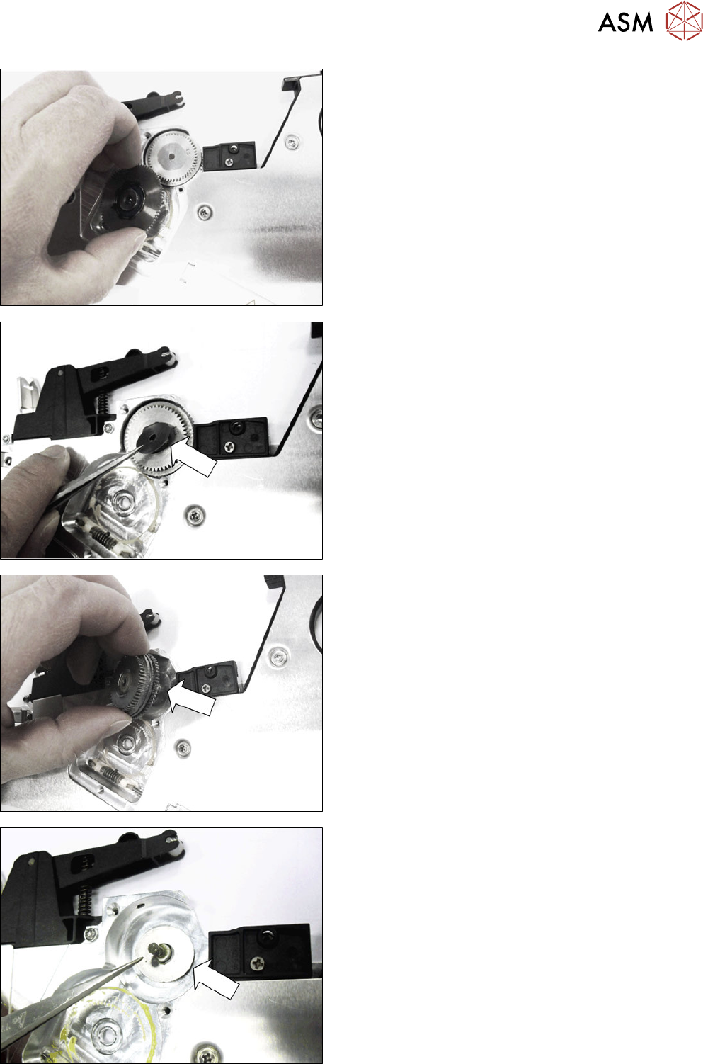 7 Reparaturen an SmartFeeder 8 mm X 7.10 Stopfrad 116 Serviceanleitung SIPLACE SmartFeeder 4 - 104 mm X 11/2017 7.10.2 Stopfrad montieren ► Legen Sie das Zuführmodul vorsichtig mit der rechten Seite auf eine stabile, ebe…