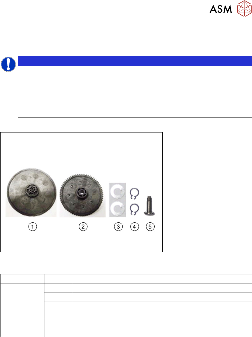 Die im Getriebesatz enthaltenen Ersatzteile sind in der folgenden Tabelle aufgeführt: