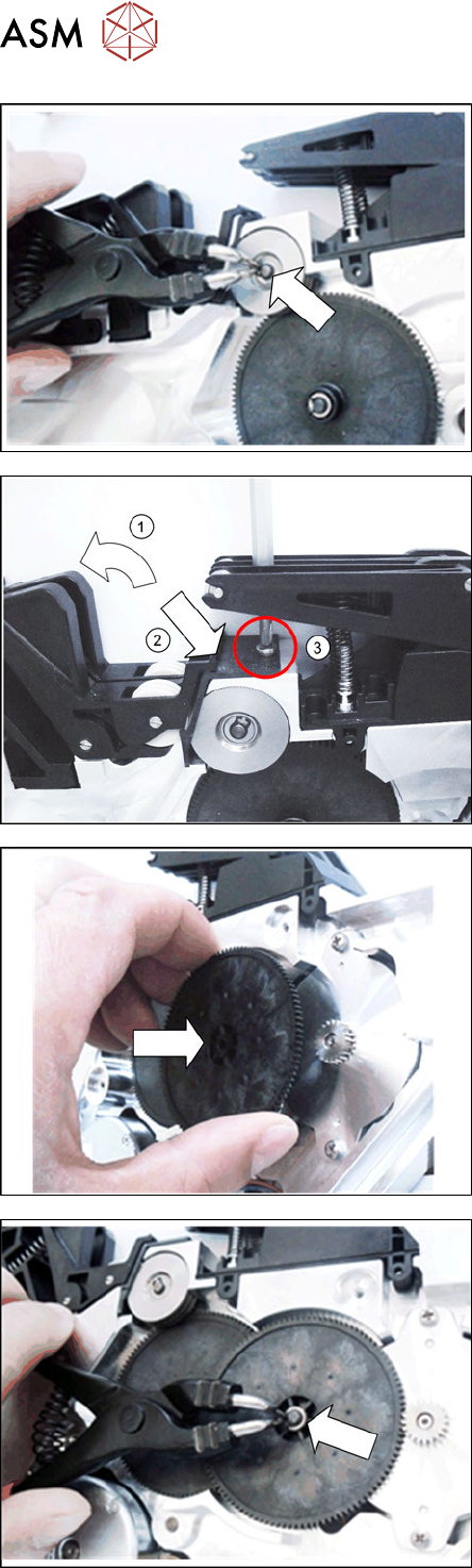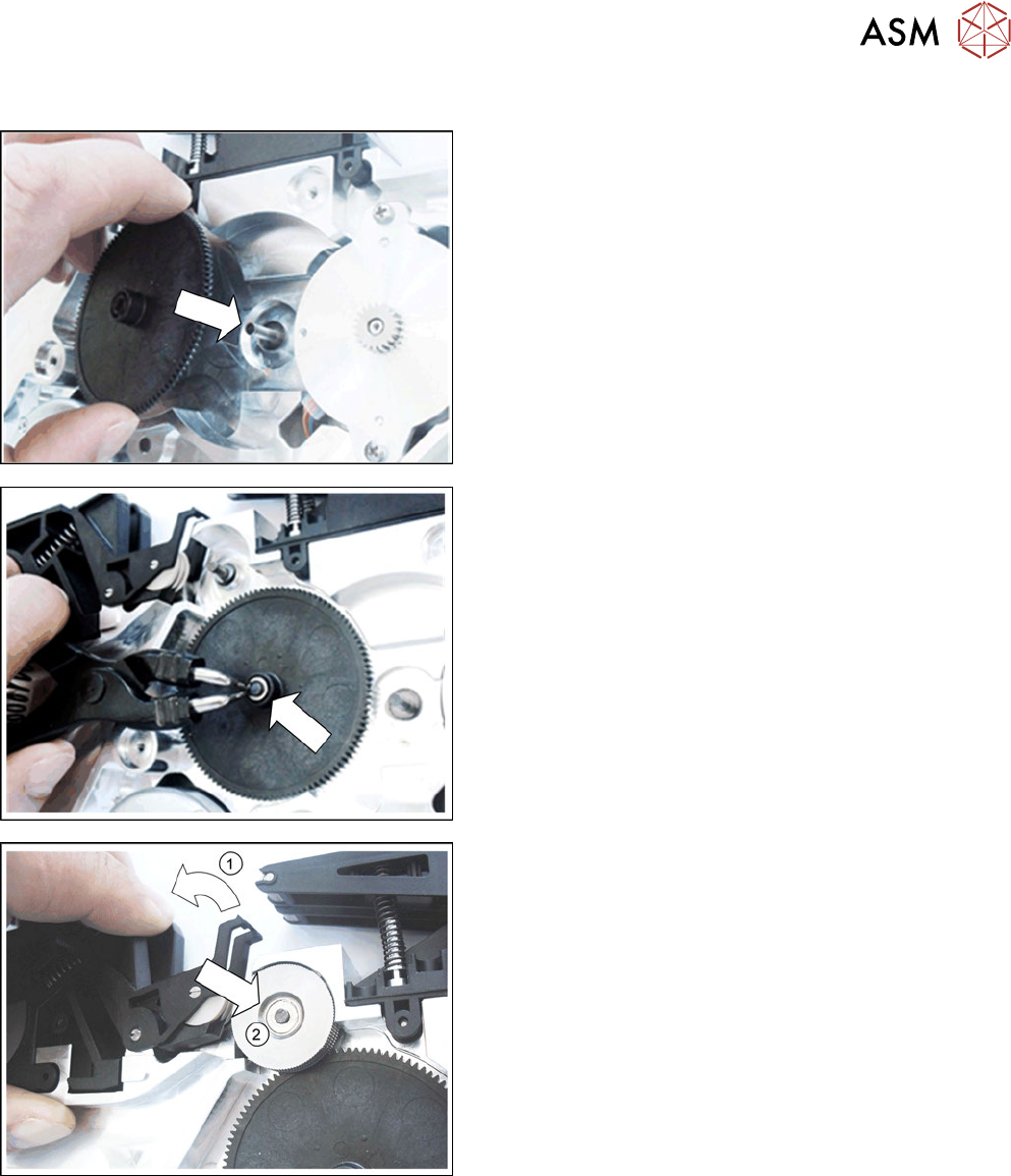 8 Reparaturen an SmartFeeder 2x8 mm X 8.7 Antriebe 164 Serviceanleitung SIPLACE SmartFeeder 4 - 104 mm X 11/2017 ► Legen Sie die Sie Unterlegscheibe auf die Achse am Stopfrad. ► Befestigen Sie den Sicherungsring an der A…