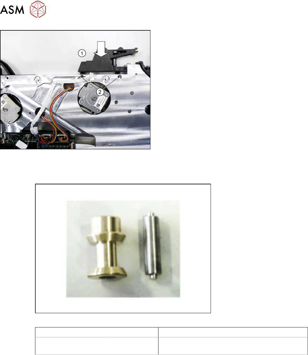 9 Reparaturen an SmartFeeder 12mmX / 16mmX 9.8 Folienschwinge 218 Serviceanleitung SIPLACE SmartFeeder 4 - 104 mm X 11/2017 ► Setzen Sie die Folienschwinge von oben an der abgebildeten Position auf das Zuführmodul (…
