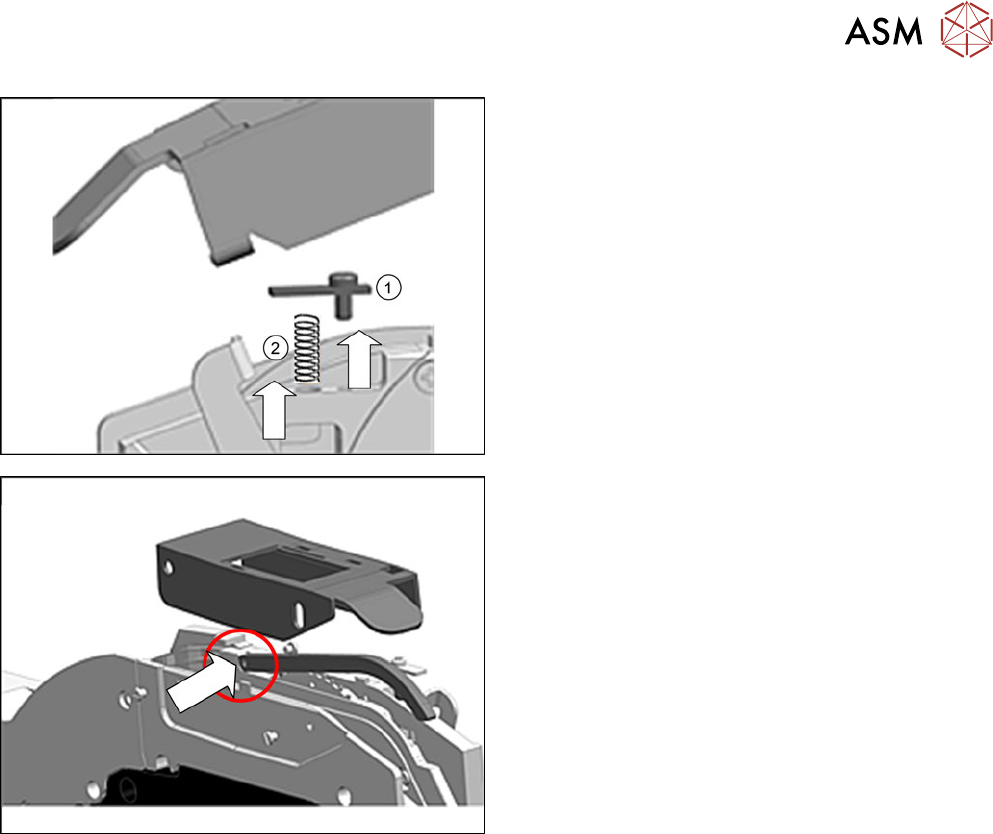 10 Reparaturen an SmartFeeder 24 - 104 mm X 10.5 Abholfenster Serviceanleitung SIPLACE SmartFeeder 4 - 104 mm X 11/2017 249 ► Entfernen Sie das Halteblech (1) . ► Entfernen Sie die Druckfeder (2). Unterhalb des Abholfe…