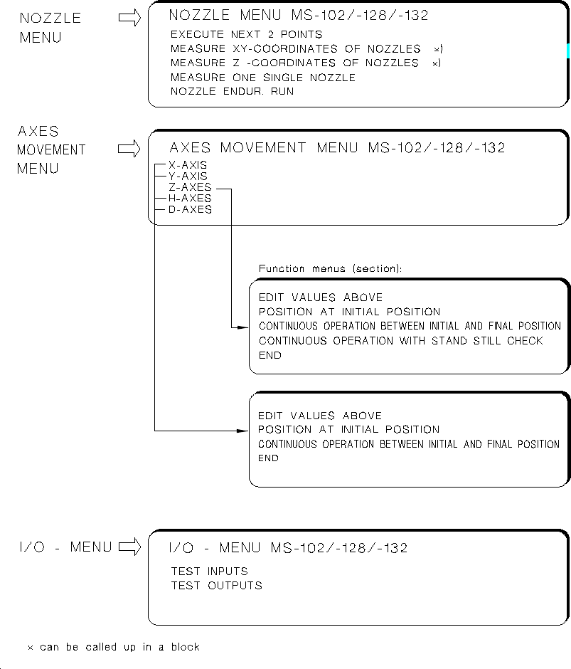 • From the EDIT MENU it is also possible to call up the AXES INIT MENU (see submenu) to ensure, for instance,