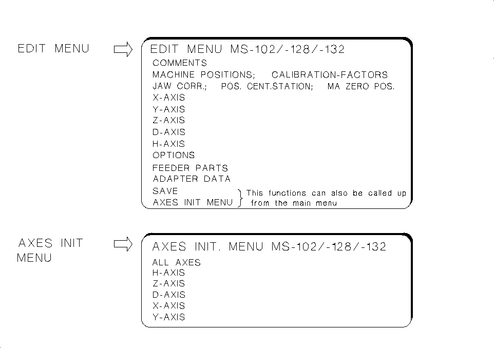rection values of the axes) directly into the MA-data and to initialize the axes directly from the EDIT MENU.