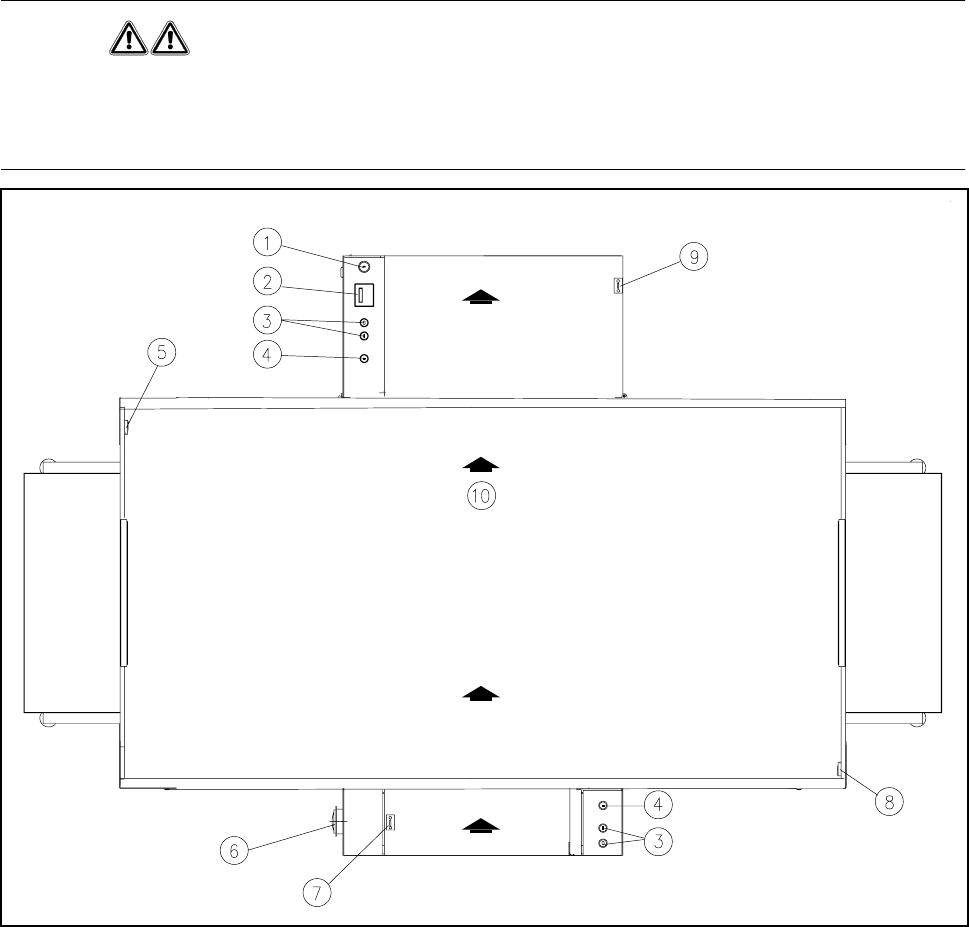 9 Skyddsbrytare täckkåpa utmatningsband 10 Transportriktning