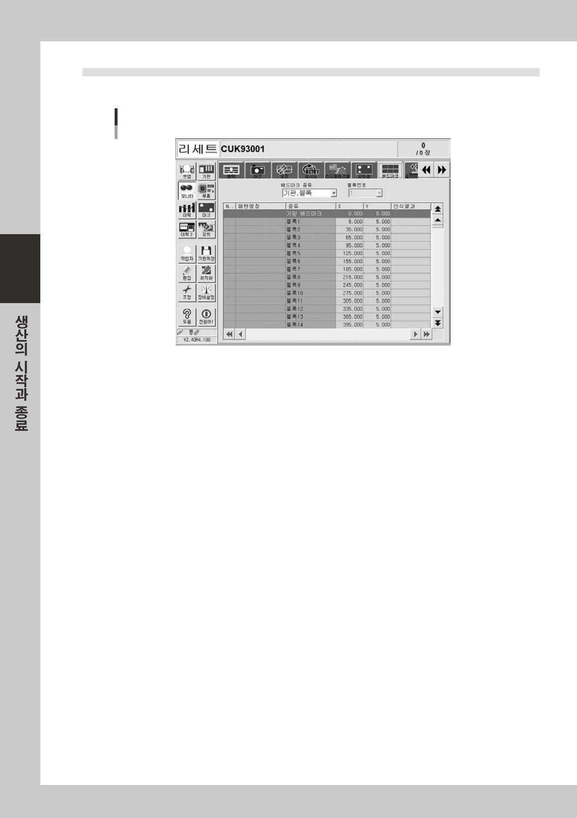 기판데이터입력값 ( 블록옵셋량참고 ) 을표시합니다 .