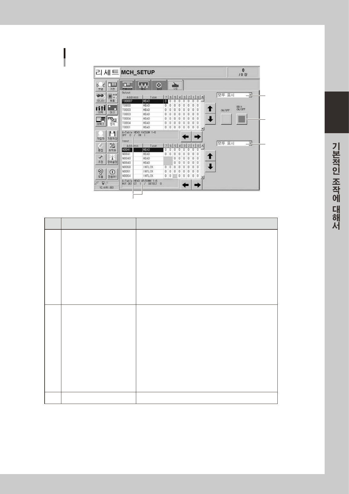 ON/OFF 전환 커서로선택되어있는부위의밸브를ON/OFF 합니다 .
