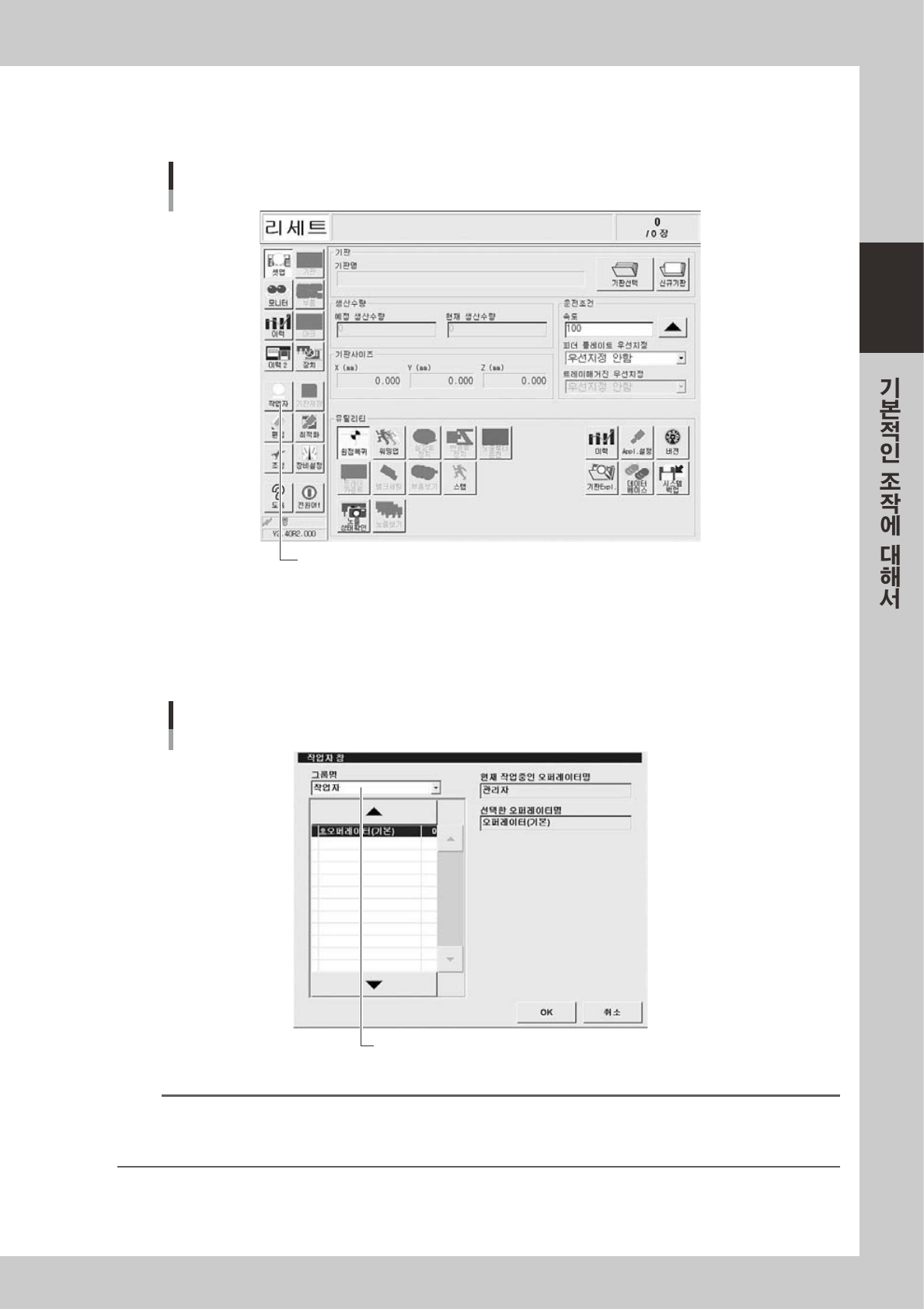2-19 2 3 [ 작 업 자 ] 버 튼 을 누 릅 니 다 . 작 업자 를 지 정하기 위한 「 작 업자 창」 이 열립니다 . [작업자]버튼을 눌러「작업자 창」을 연다 [작업자] 버튼 2 8 2 13 - M 1- 0 0 4 작 업 자 를 지 정 하 고 , 패 스 워 드 를 입 력 합 니 다 . 필요에 따 라 「 그룹 명」 리스 트 로부 터 , 「 관 리자」 또는 「 서…