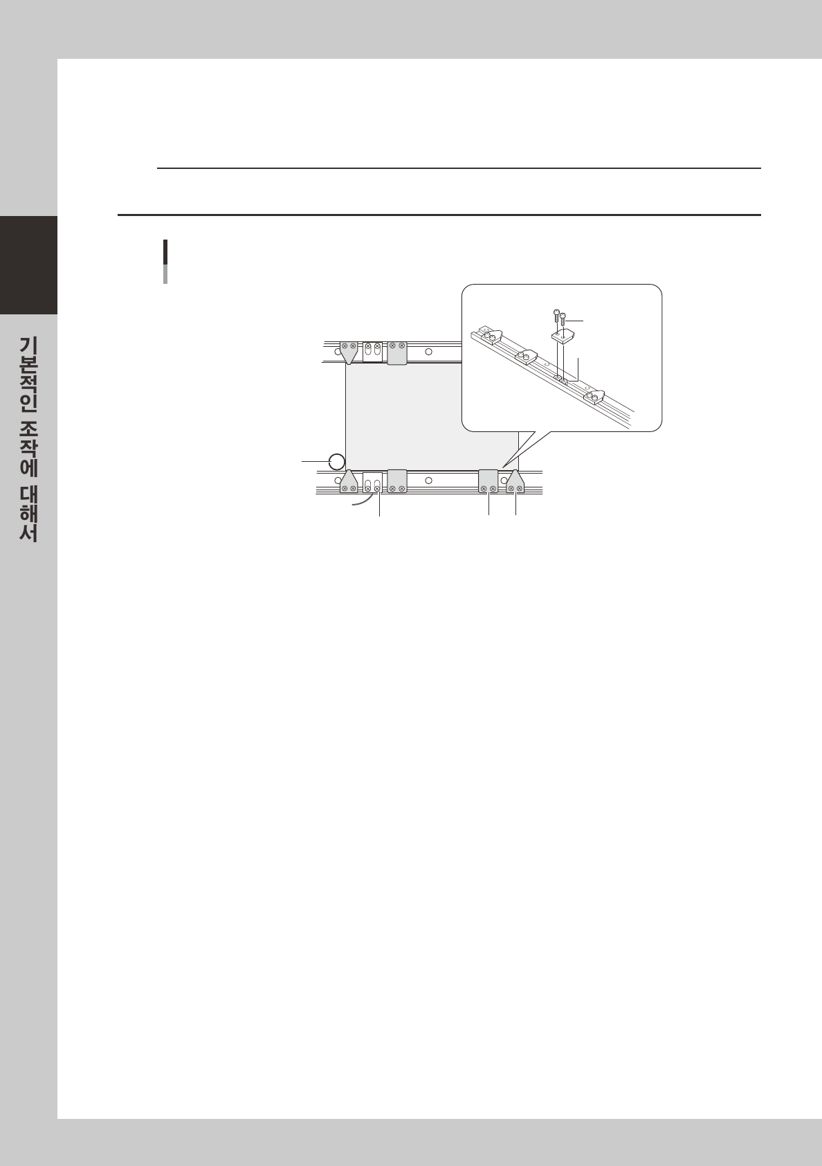 레일상에 플러스나사 (M3) 로 고정되어 있습니다 . 기판사이즈에 따라서 균일하게 배치하여 주십시오 .