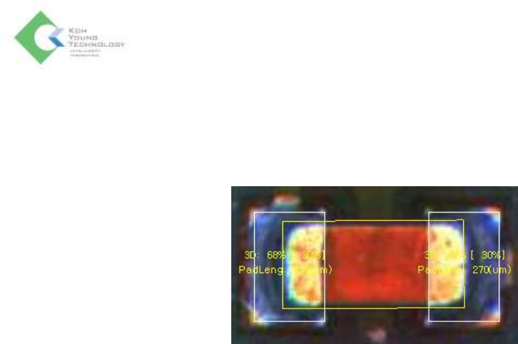 K oh Y oung Technolo g y Inc. 153 Joint 模式 2: Volume 比较 Solder Joint 体积与检测条件。此 模式为确认少锡 (Solder fillet) 最 推荐的模式。 检查 Solder Joint 体积的最低要求。检 查从蓝线矩形计算出来的 Solde r Joint 体积的最低要求。理想的体积 量取决于‘Height for 100 % volume’ 设置。 为了稳定的 3D…