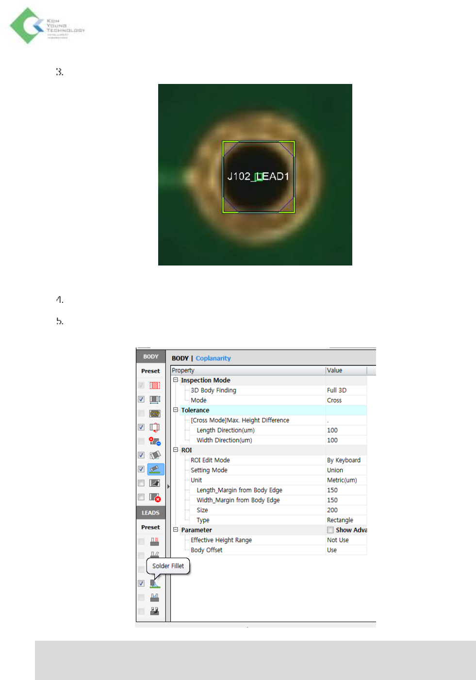 并且,本体检测项目中的OCV、Polarity将被禁用,同时引脚中除Solder Fillet以外的所有选项