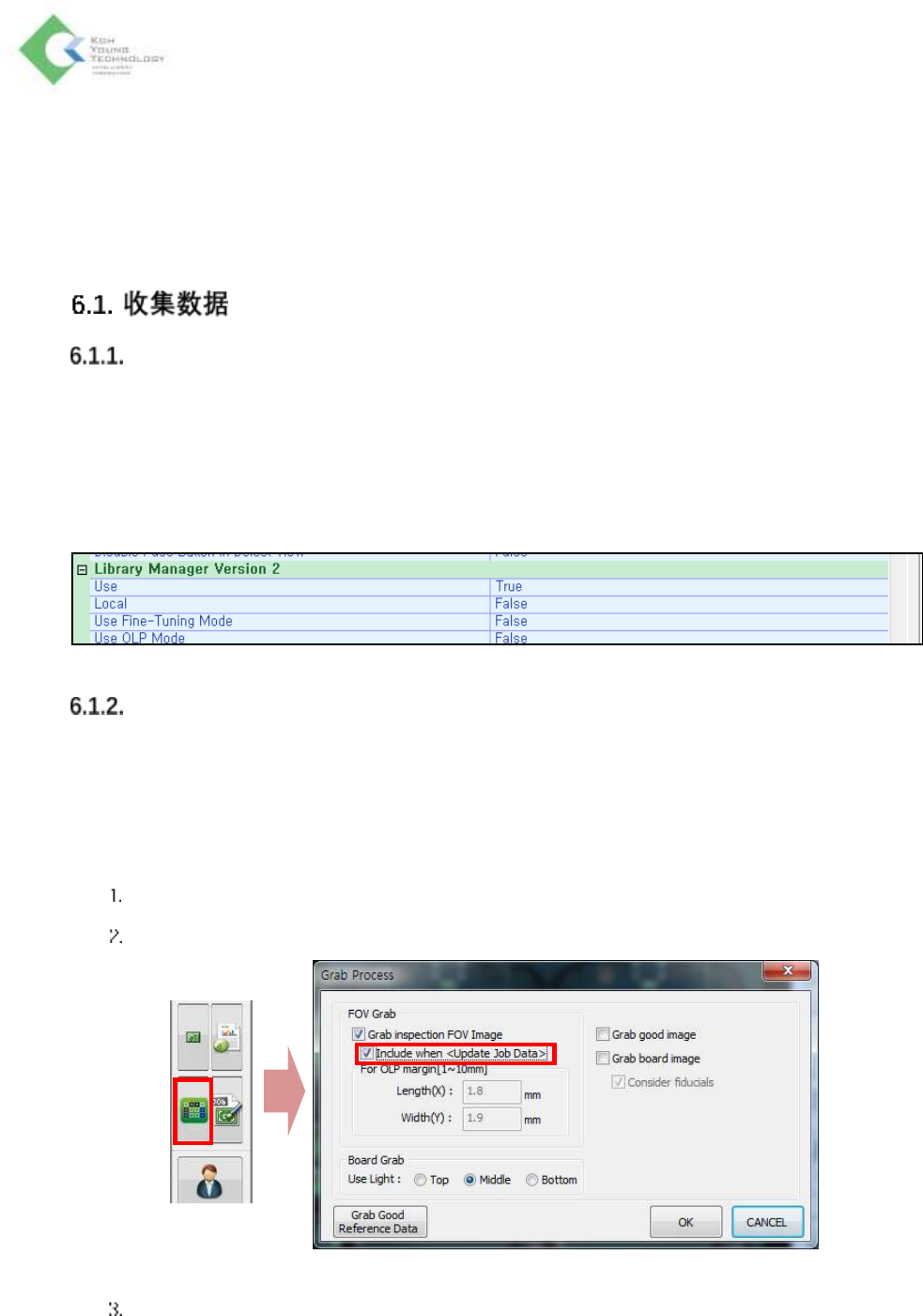 K oh Y oung Technolo g y Inc. 168 6. OLP(Off-line Programming) 将 AOIGUI 设为 OLP(Off-line Programming) 模式时,可 以将 Full Grab 图像或模拟所 需的各种文件上传到 LM 服务器进行管理和派发 ,用户无需手动复制或移动文件,即 可方便制作 JOB 。 OLP 模式下制作的 JOB 文件可以使用 LM2.0 的 Web manage…
