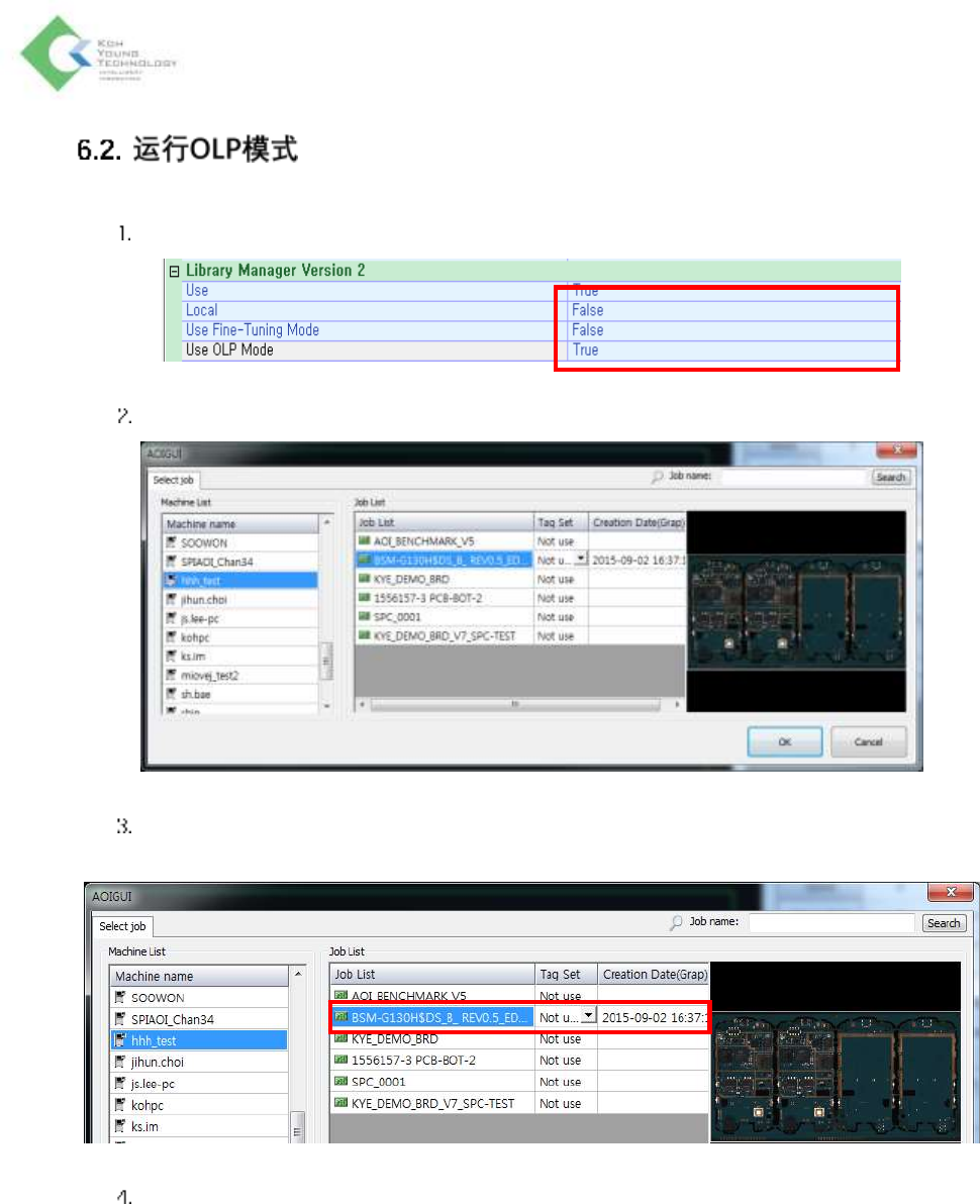 如要使用OLP PC用OLP模式运行AOIGUI,请按以下顺序进行操作。