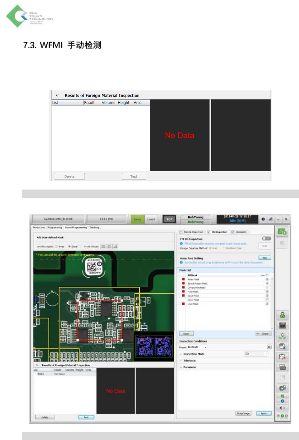 1. 想要进行 WFMI 手动检测时,需要激活左下角的 Results of Foreign Material Inspection 面