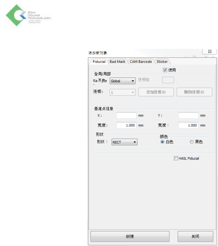 适用: 选择是否使用Fiducial添加功能