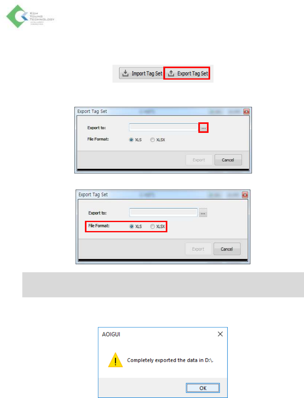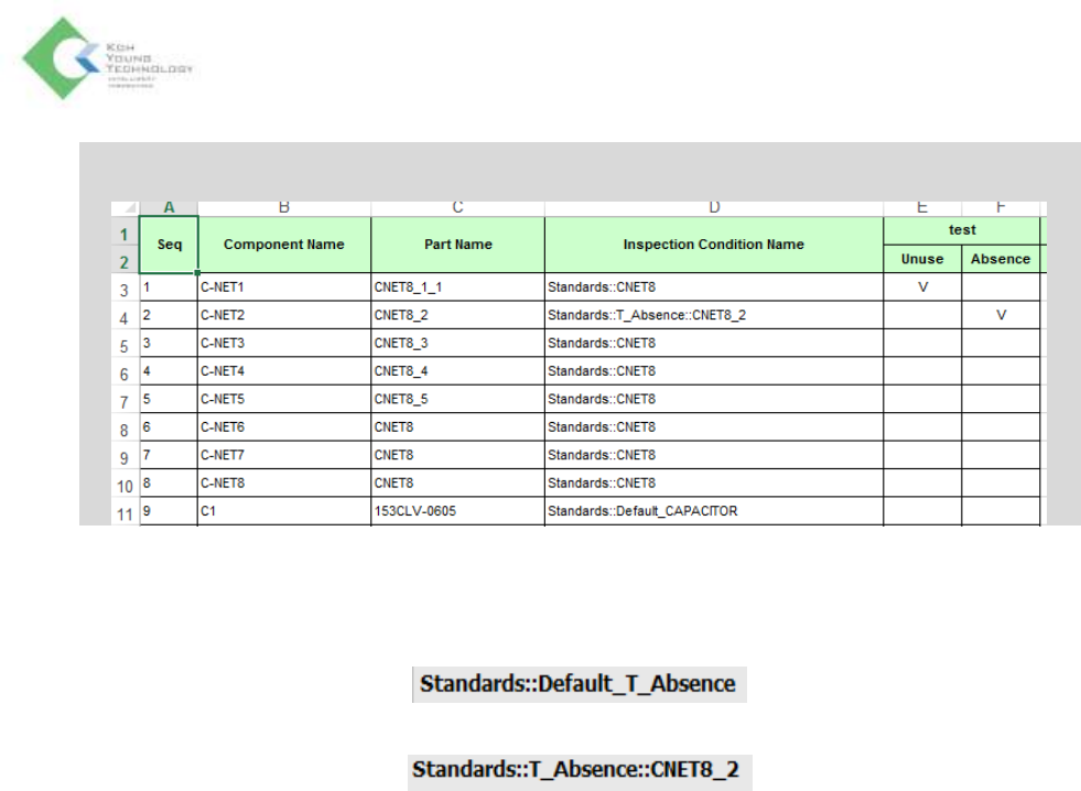 K oh Y oung Technolo g y Inc. 205 ※ 注 : 完成进行 Export Tag Set 的 Excel 文件 由在 Tag Set 窗口显示的 Tag S et 与 Tag Set 选项 (Unused/Absence) 构成。 Tag Set Absence 检测 条件名 按以下方法表示。 - 默认 : Standards::Default_T_A bsence - 更改检测条件时 : Standa r…