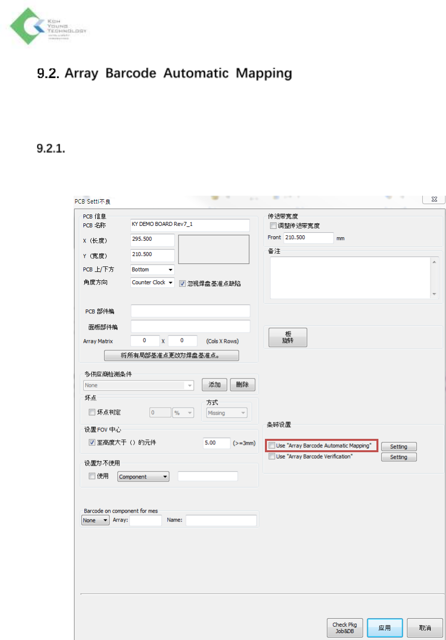 加载程式文件时,首先弹出PCB Setting& Info窗口。如要使用Array Barcode Automatic Mapping功