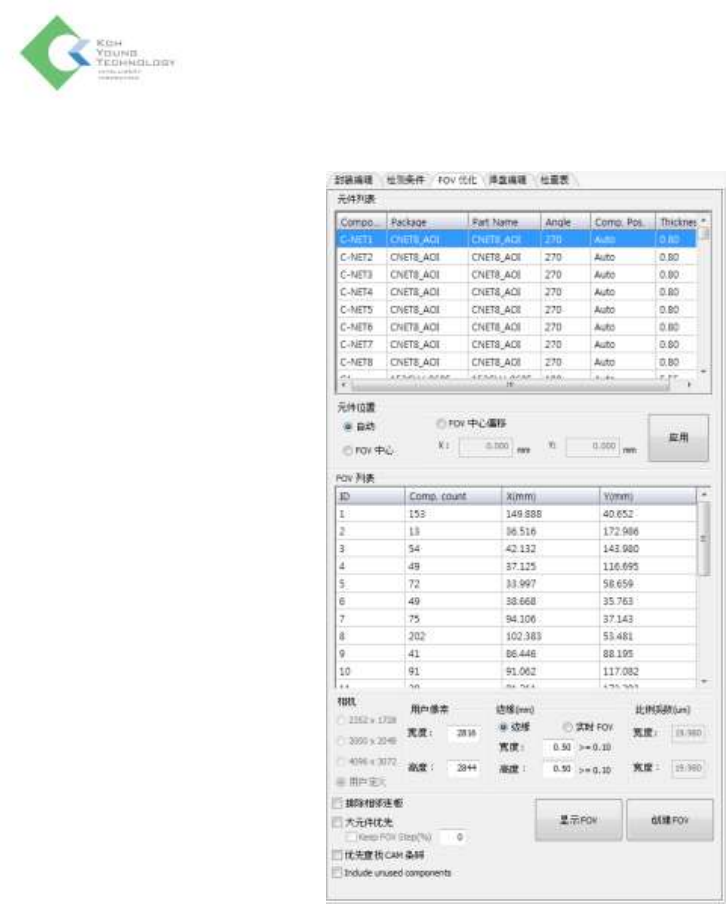 中间界面 - FOV Optimize 选项卡