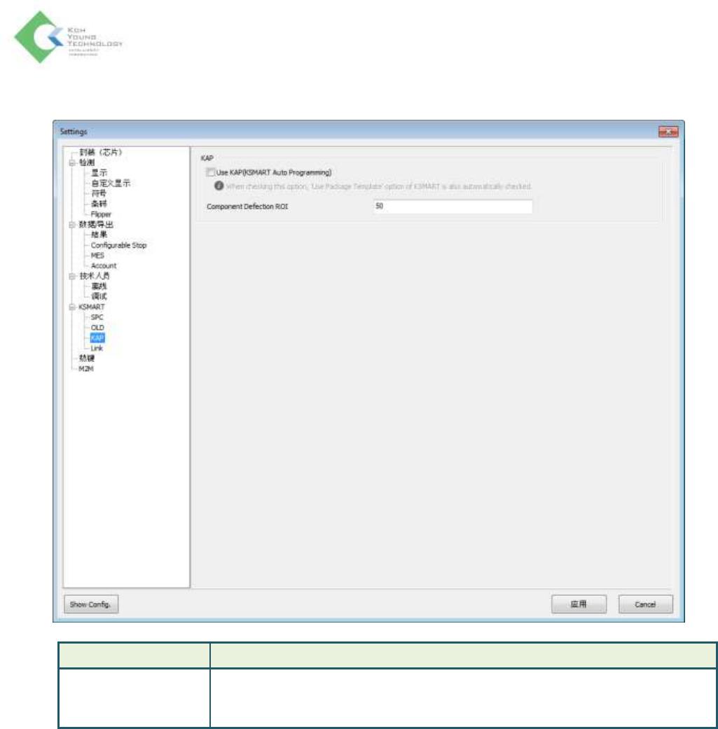 K oh Y oung Technolo g y Inc. 62 KSMART > OLD 项目 说明 Save CDO Use Save CDO: 创建 NG 元件的 C DO 文件 Number of CDO Saved for NG Component each parts - Sea (Default): 将每个发生 NG 的 C DO 数量限制为 5 个 - All: 对于 NG 元件创建无限制的 C DO 文件…