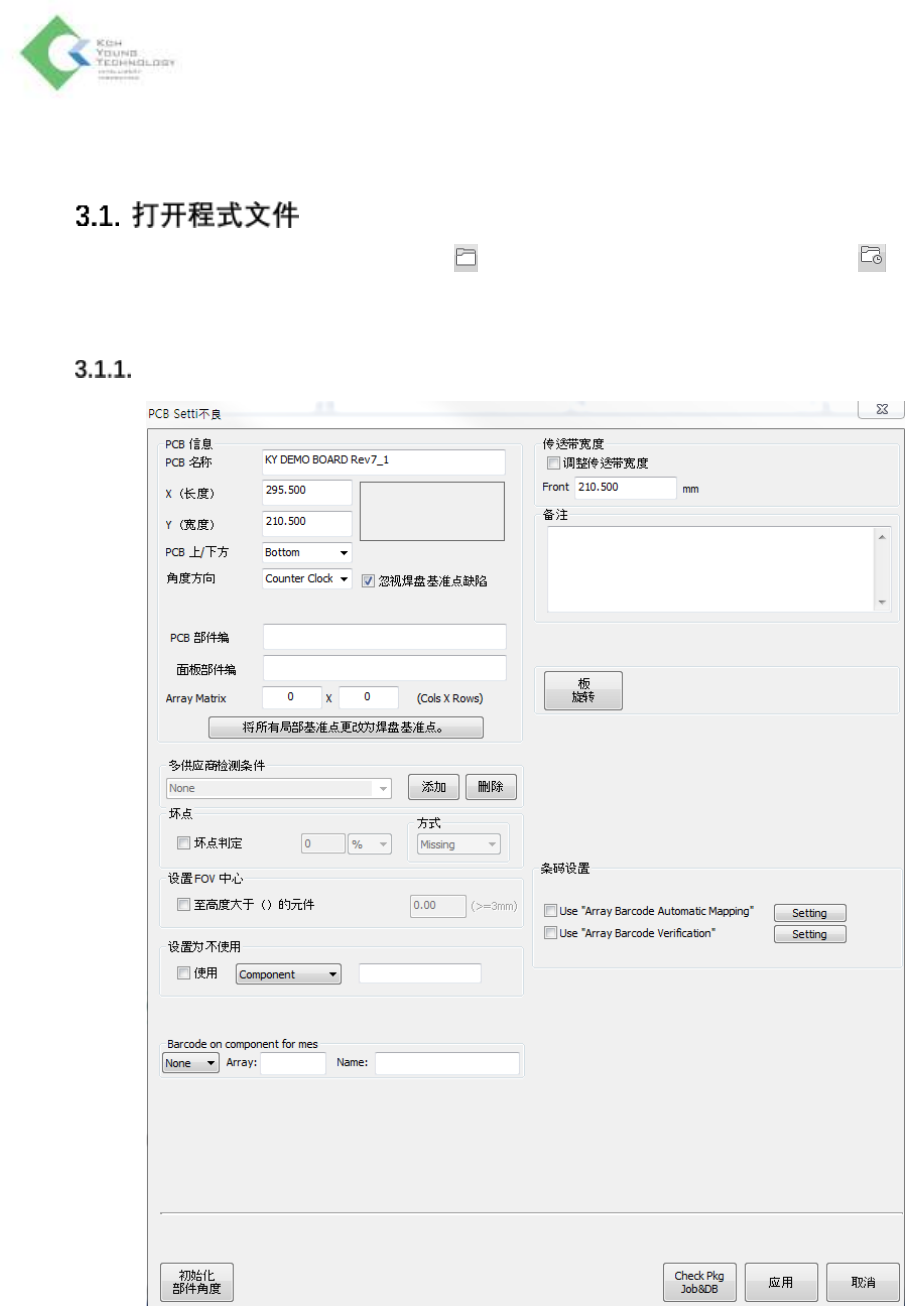 择最近打开的程式文件。显示如下的 PCB设置画面,请进行程式加载入相关设置。