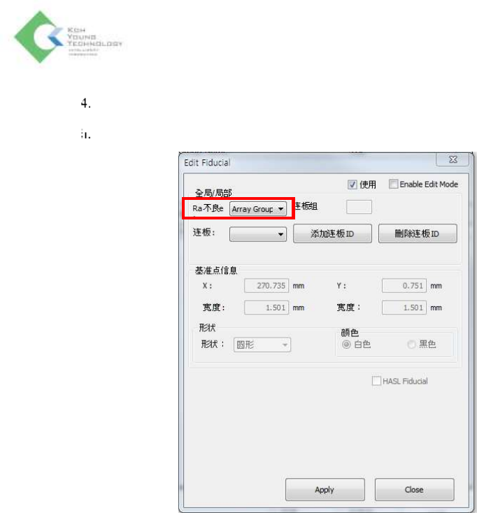 出现Edit Fiducial窗,设置Range为Array Group后点击Add array ID