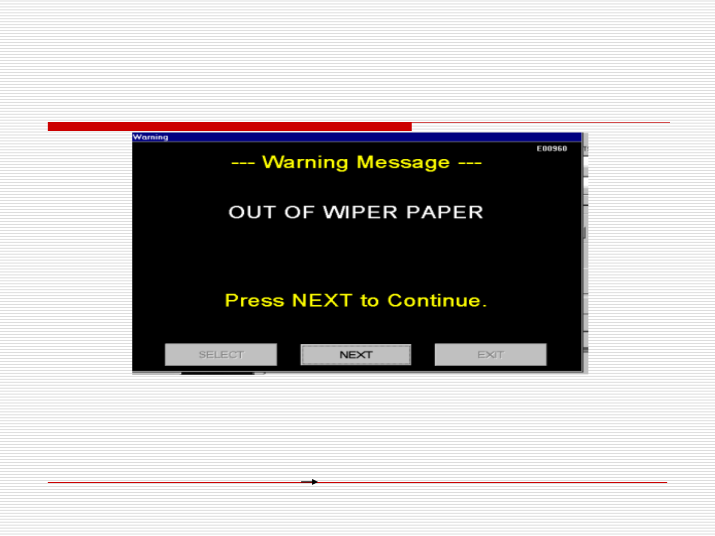 12. 印刷 较常出现的错误页面 表示: MARK 偏差超出极限 操作步骤: NEXT EXI T (右键) 退出印刷 注意事项:如果直接点“ NEXT NEXT ” 就会导致印刷偏移