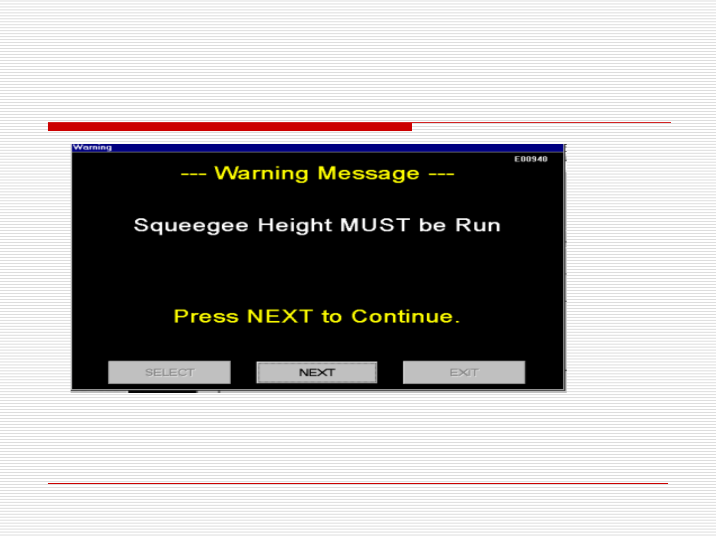 12. 印刷 较常出现的错误页面 表示:需要做刮刀高度 动作步骤:通知技术员