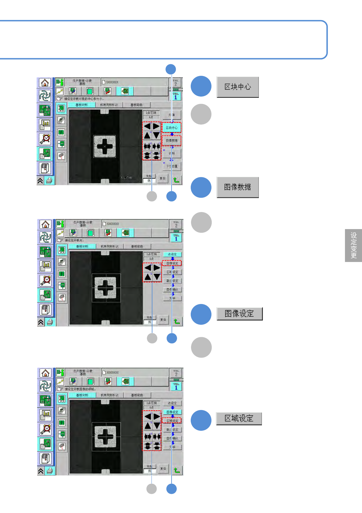 NPM-D3 EJM6DC-MB-06O-09 生产数据 校正 基板识别校正 5 操作篇 6-2-2 6-2-2 -9 11 12 E F 10 F E 10 11 12 区块匹配 2 ●无需特意设定跳过值。 ●无需特意进行图像确认。 设定进行区块匹配识别之际的搜索区 域 ( 识别范围 ) 。 设定进行区块匹配识别之际的搜索区 域 ( 识别范围 ) 。