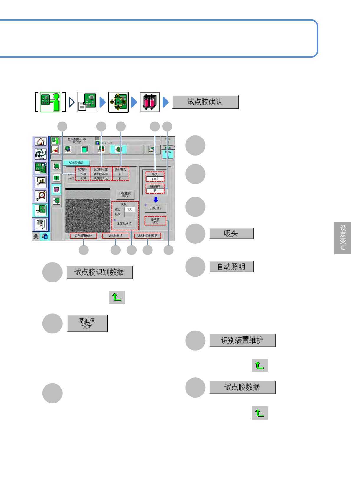 (返回试点胶校正画面)