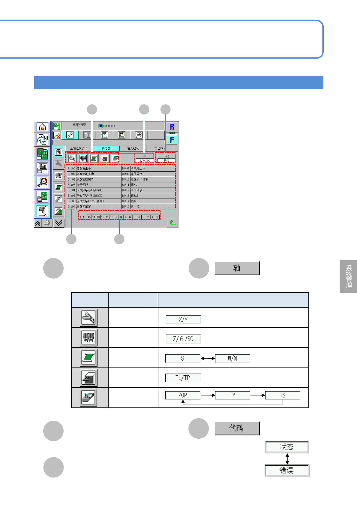 ●状态代码: 轴信息以BIT表示。