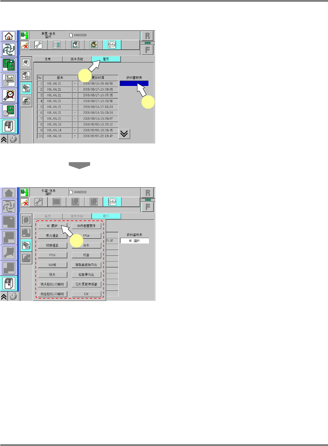 在需要显示其它固件的版本履历时使用。