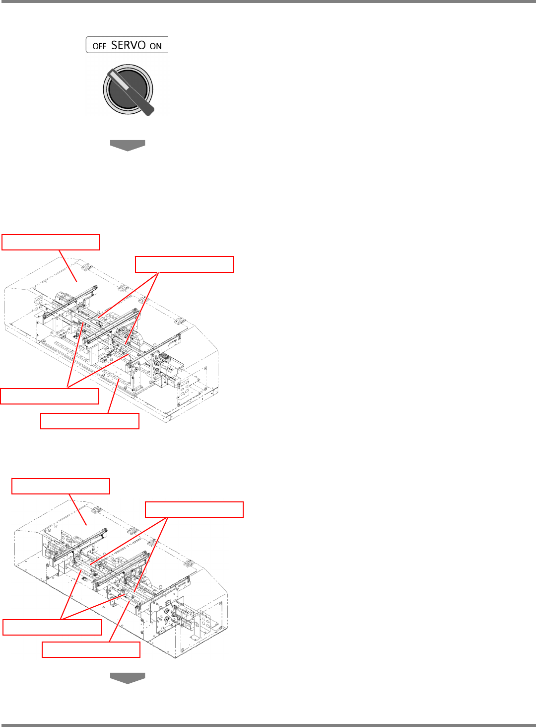 NPM-D 维修篇 5.2 NPM-D 传送带 ( 选购件 ) 的供给润滑脂 Page 5-6 EJM1DC-MB-05M-00 5 将伺服开关置于 OFF 。 6 打开上面盖。 7 涂敷润滑脂。 LNB 传送带 (NL-CON2) 、 HUB 传送带 (NH-CON2) 、传送带 L(N-CONL2) 、 传送带 R(N-CONR2) ∗ 向 NPM-D 传送带的宽度调整滚珠丝杠 、 宽度 调整线性导轨 、滚珠花键 上…