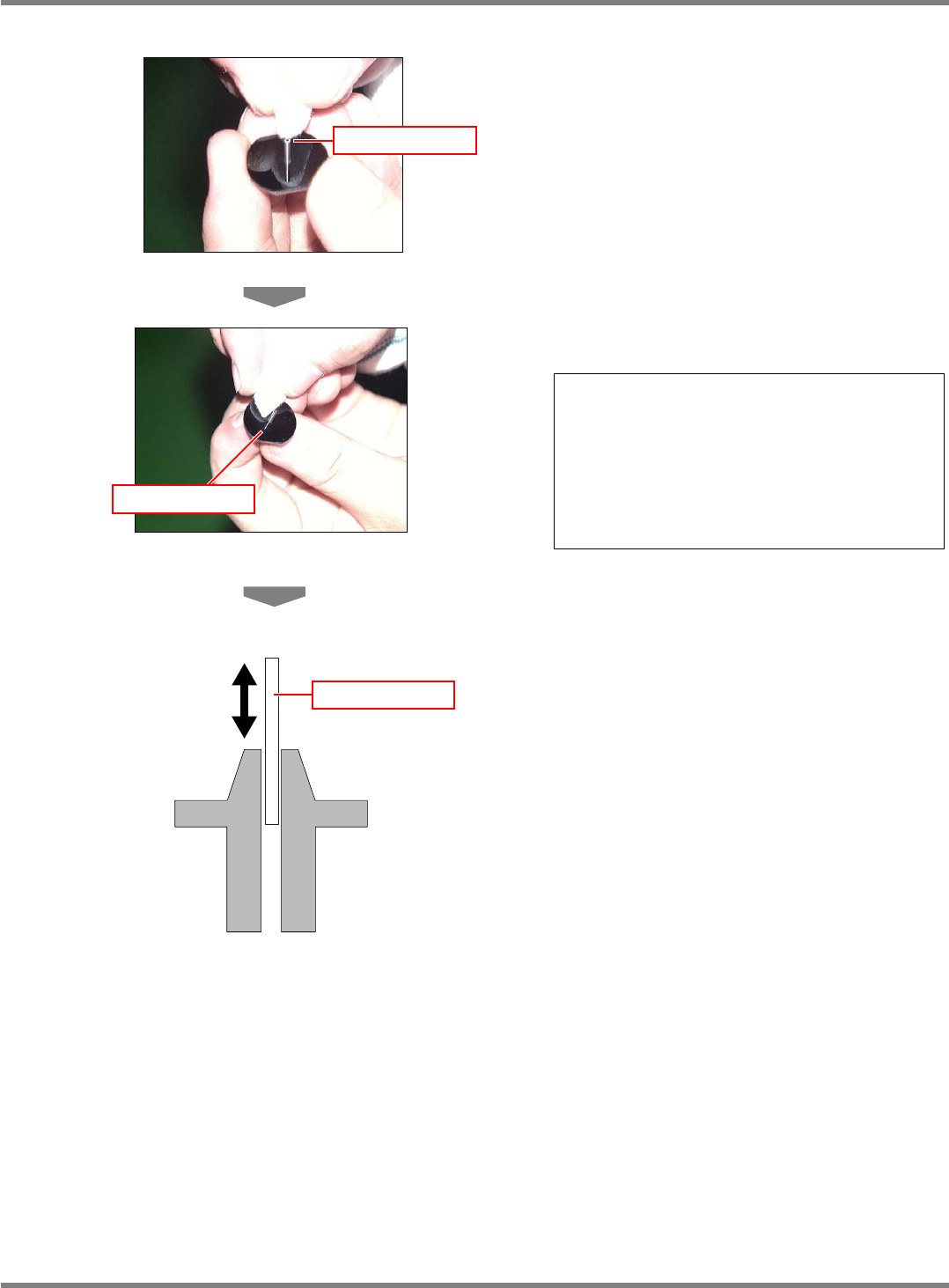 NPM-D 维修篇 5.5 吸嘴 ( 选购件 ) 和吸嘴交换器 ( 选购件 ) 的清扫 EJM1DC-MB-05M -00 Page 5-25 3 用棉纱布擦拭吸嘴尖端部 ( 吸嘴部位 ) 。 4 用棉纱布擦拭吸嘴反射板。 ∗ 这时绝对不要使用溶剂。否则,吸嘴反 射板会发生变色、变形、粘着剥落。 ∗ 对吸嘴进行超音波洗净时,只能对吸嘴 的先端部进行。如果对吸嘴整体进行超 音波洗净,会导致吸嘴反射板的腐蚀, 是造成芯片识别错误的原因。 5…