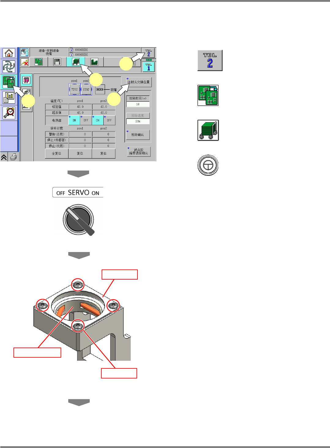 以下的步骤,以点胶头设置在后方,并从前方进行操作的示例进行说明。