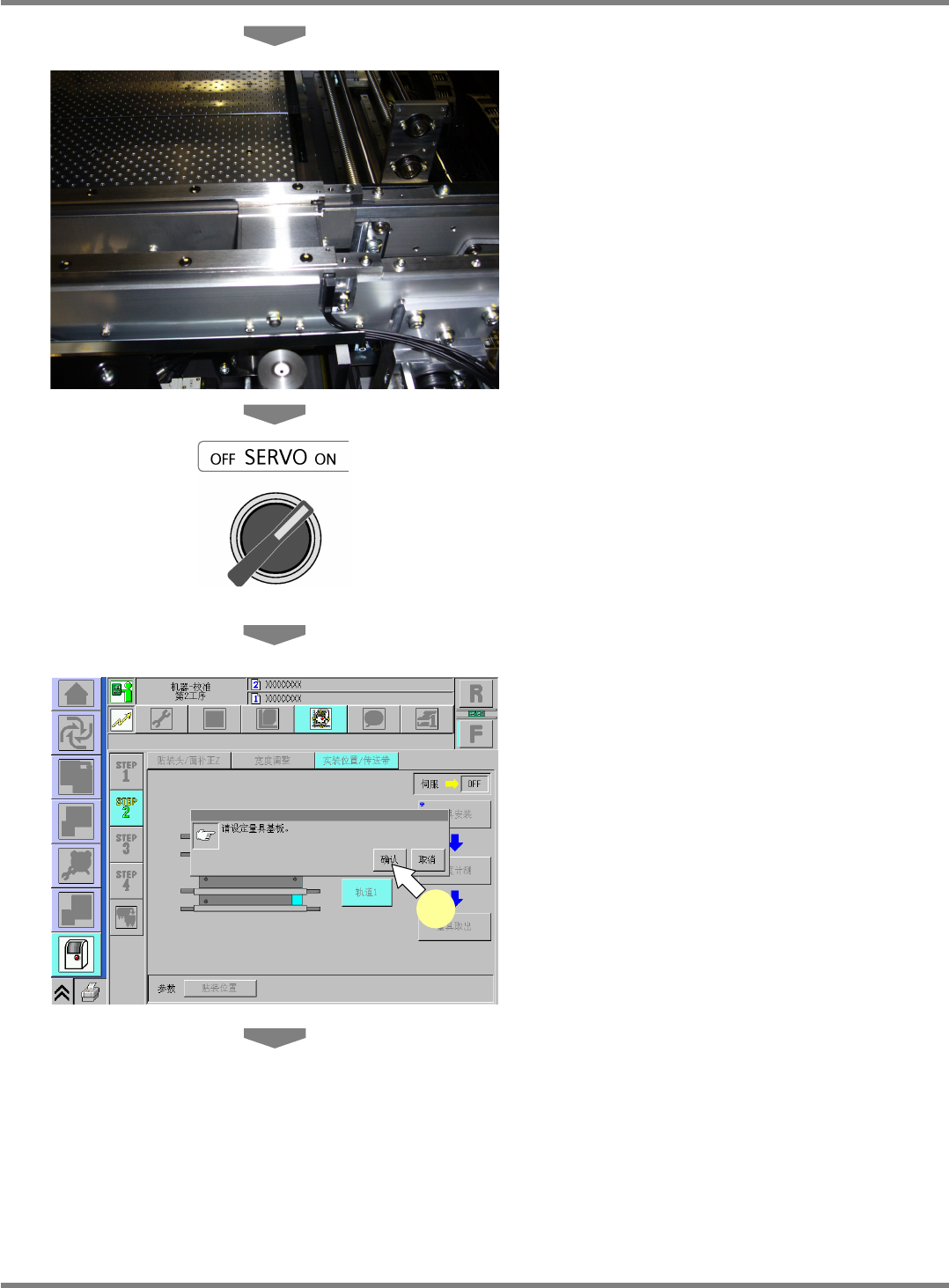 NPM-D 维修篇 9.6 实装位置 / 传送带 Page 9-26 EJM1DC-MB-09M-00 10 按 + [ 高度计测 ] 。 • 吸头将会移动到作业位置。 11 将伺服开关置于 OFF 。 12 打开安全盖。 13 安装吸嘴。 16 吸嘴吸头 ∗ 请将 230CS 吸嘴安装在吸嘴位置 5 上。 12 吸嘴吸头 ∗ 请将 230CS 吸嘴安装在吸嘴位置 4 上。 8 吸嘴吸头 ∗ 请将 230C 吸嘴安装在吸嘴位置 3 上。…