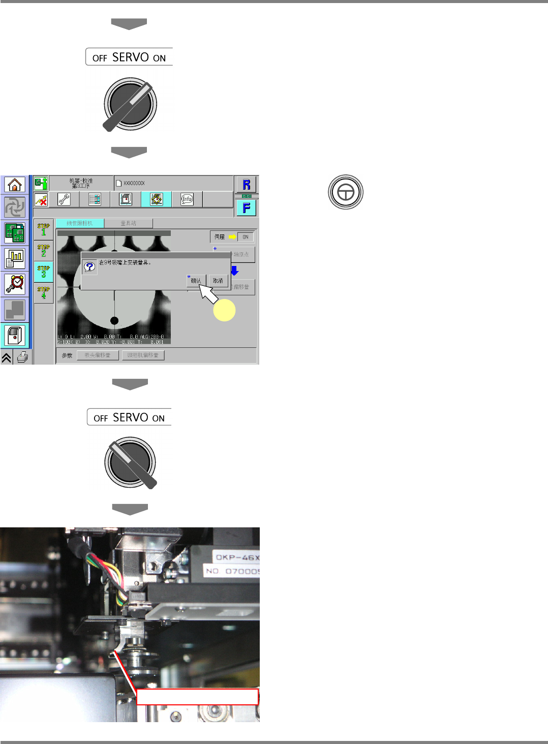 NPM-D 维修篇 9.9 线性照相机 EJM1DC-MB-09M -00 Page 9-61 16 将伺服开关置于 ON 。 17 按 [ 是 ] 。 18 将伺服开关置于 OFF 。 19 打开安全盖。 20 换上线性照相机量具。 16 吸嘴吸头 ∗ 请将线性照相机量具从吸嘴位置 12 换到吸嘴 位置 5 。 12 吸嘴吸头 ∗ 请将线性照相机量具从吸嘴位置 9 换到吸嘴位 置 4 。 8 吸嘴吸头 ∗ 请将线性照相机量具从吸嘴位置…