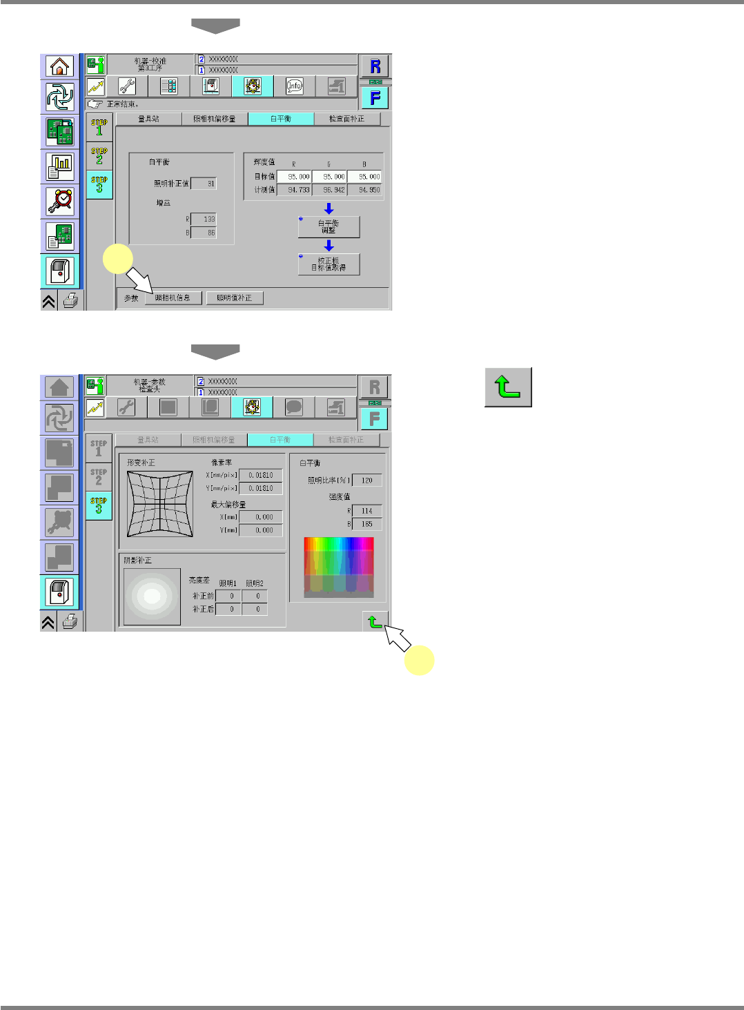 NPM-D 维修篇 9.14 白平衡 (2D 检查吸头 ) Page 9-90 EJM1DC-MB-09M-00 17 关闭安全盖。 18 将伺服开关置于 ON 。 19 按 [ 确认 ] 。 20 按下 + [ 校正板目标值取得 ] 。 • 检查头动作,取得常设灰色板的校正 目标值。 UnitCalibInspectorBa lance-05C01 19 UnitCalibInspectorBa lance-06C01 20
