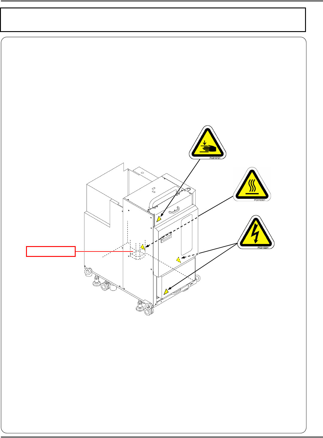 NPM-D 安全注意事项 EJM1DC-SF-02N-00 Page S-29 产品上的安全标牌 支持站 : 支持站 BOX ( 选购件 ) 警告标牌 如下图所示,本机器贴有警告显示标 牌。请遵守标牌的指示。 标牌脱落时,请参照 Parts List ( 元件一览表 ) 的标牌型号,向本公司订购并 将其重新粘贴到正确的位置 。 支持站 BOX 的警告表示标牌粘贴位置 N610099162AA_ 00