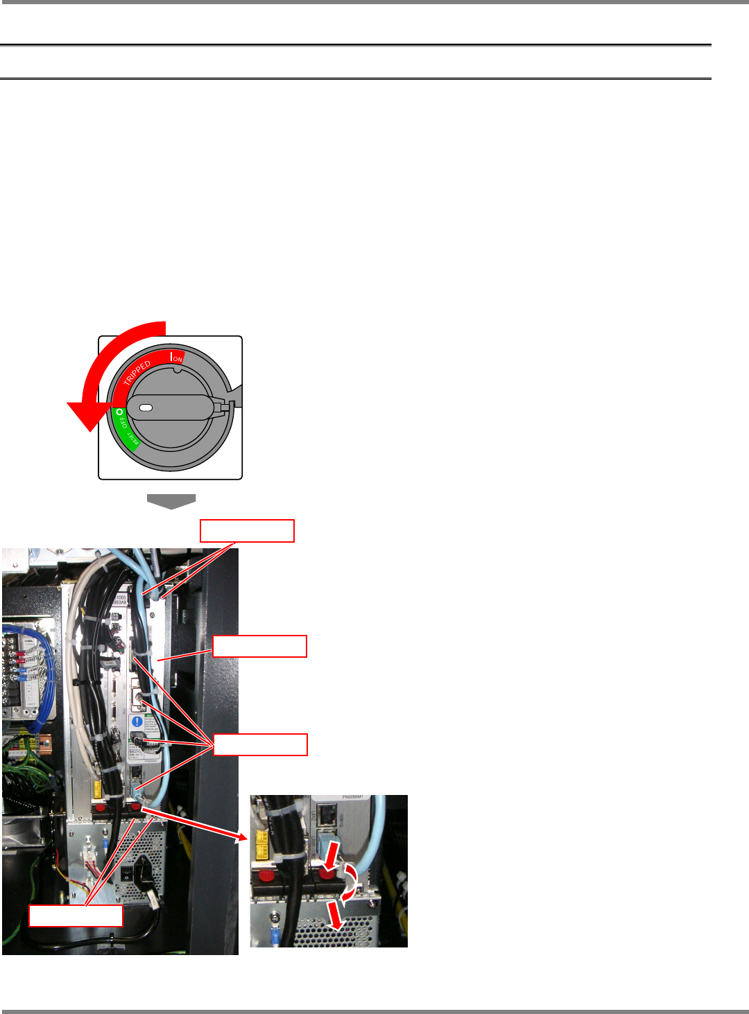 NPM-D 维修篇 11.3 蓄电池的更换 Page 11-10 EJM1DC-MB-11M-00 11.3.1 NPM-D 蓄电池的更换 1 CPU 板蓄电池的更换 蓄电池的使用寿命约为 10 年。 ( 根据使用条件有所不同 ) 蓄电池电压降低后,在监视器画面上 将会显示电压降低的警告信 息。请按照下述顺序更换蓄 电池。 注意事项 1. 请在 2 小时以内完成程序 1 ~ 7 为止的作业。 2. 请注意勿使散热片先端部损伤电缆。 3.…