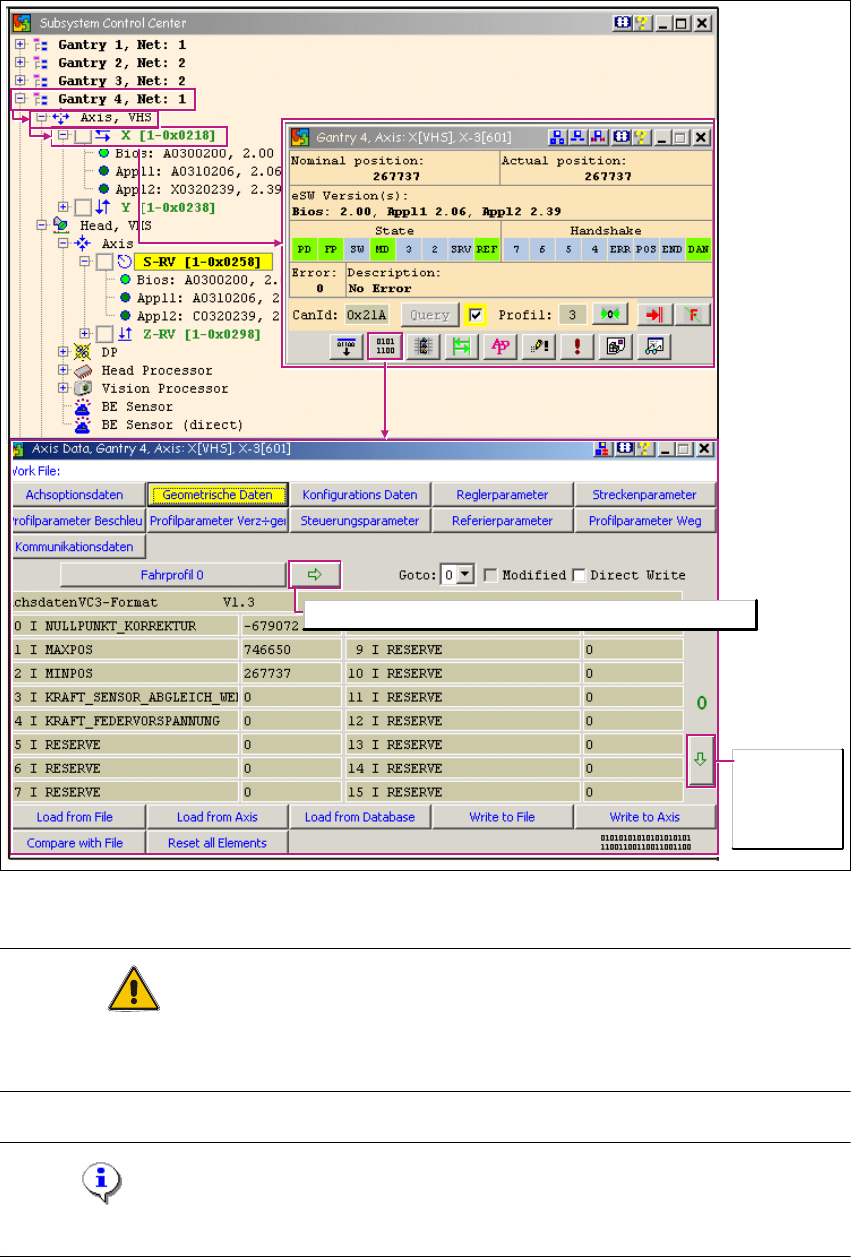 Abb. 1 - 19 Maschinendaten (zur Ansicht) von Achse laden