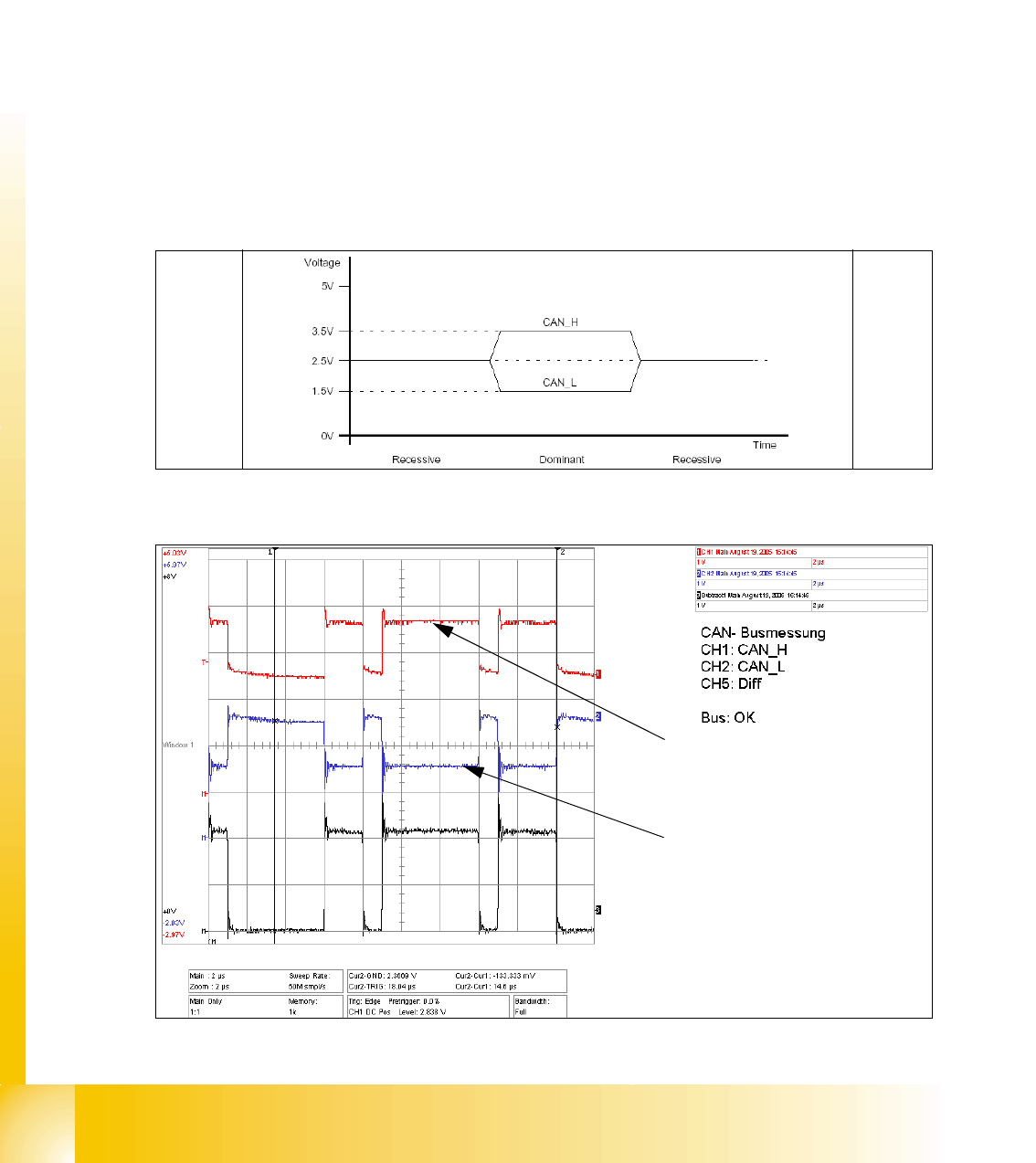 Die dominanten Pegel CAN H und CAN L enthalten die Informationen und müssen bestimmte