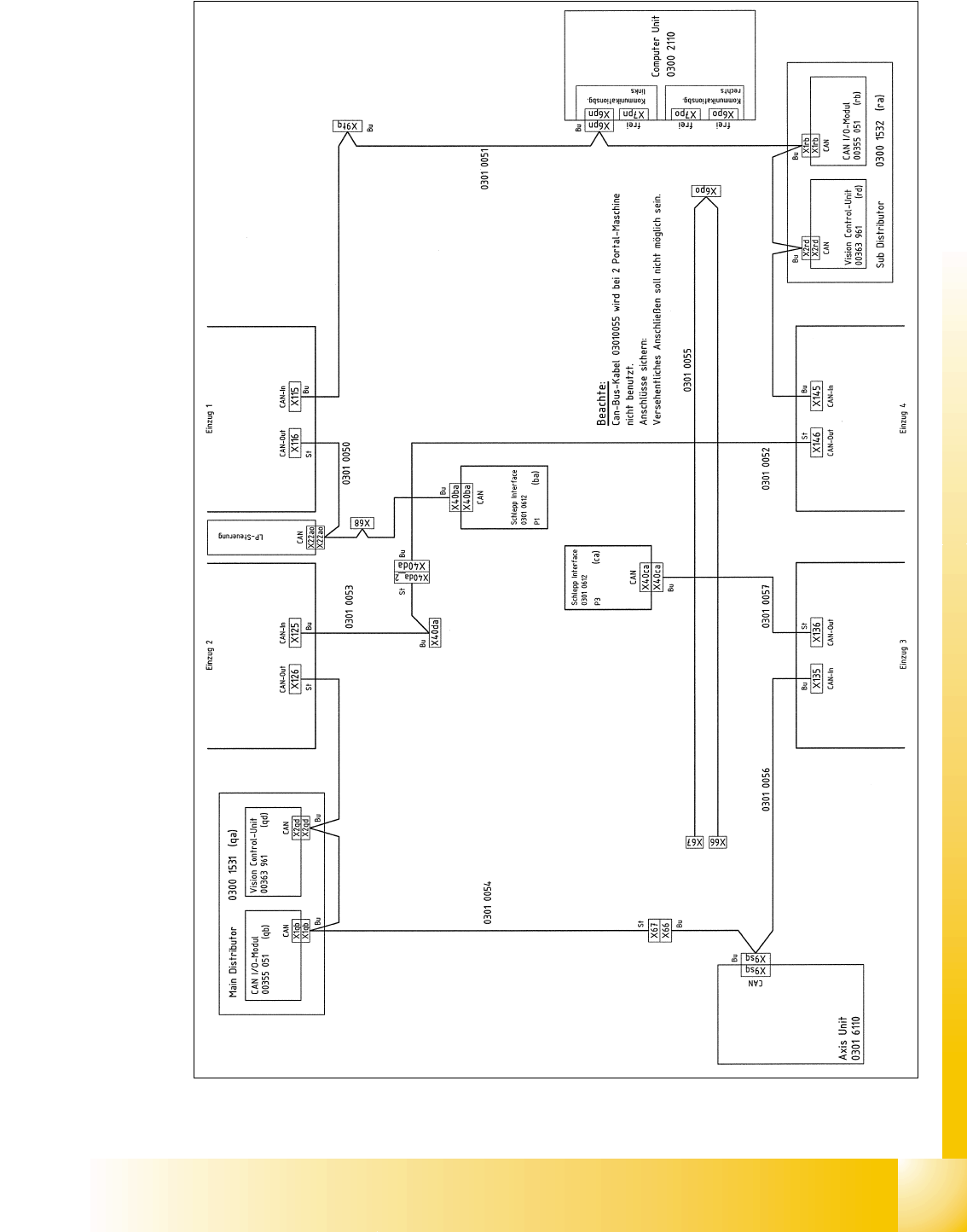 schriftung am Kabel (0301xxxx-0x), ein CAN Bus für beide Bestückbereiche.