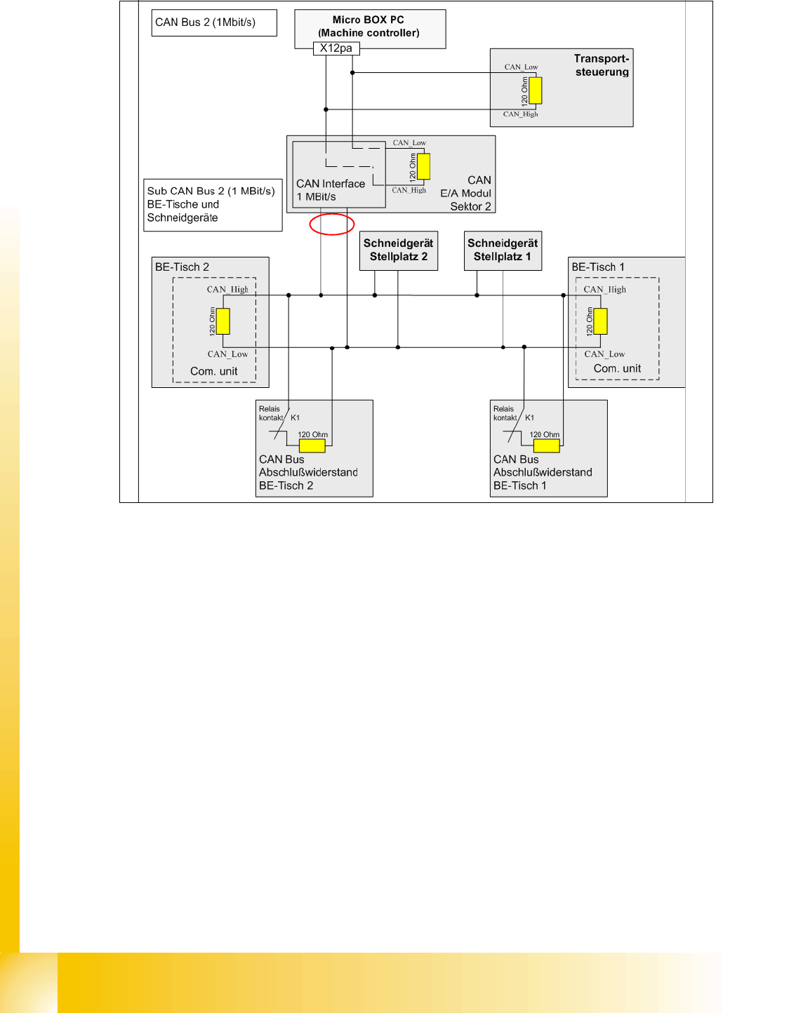 In the Abb. 1.10 - 58 sind vier Abschlußwiderstände für den CAN BUS BE-Tische und Schneidg-