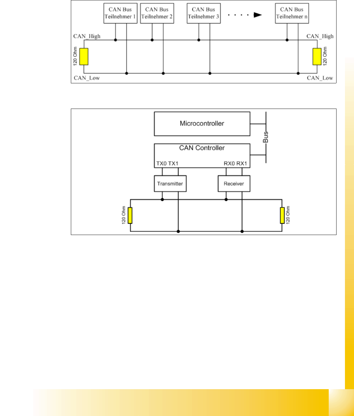 gen CAN_High und CAN_Low, welche jeweils mit einem Abschlusswiderstand von 120 Ohm ver-