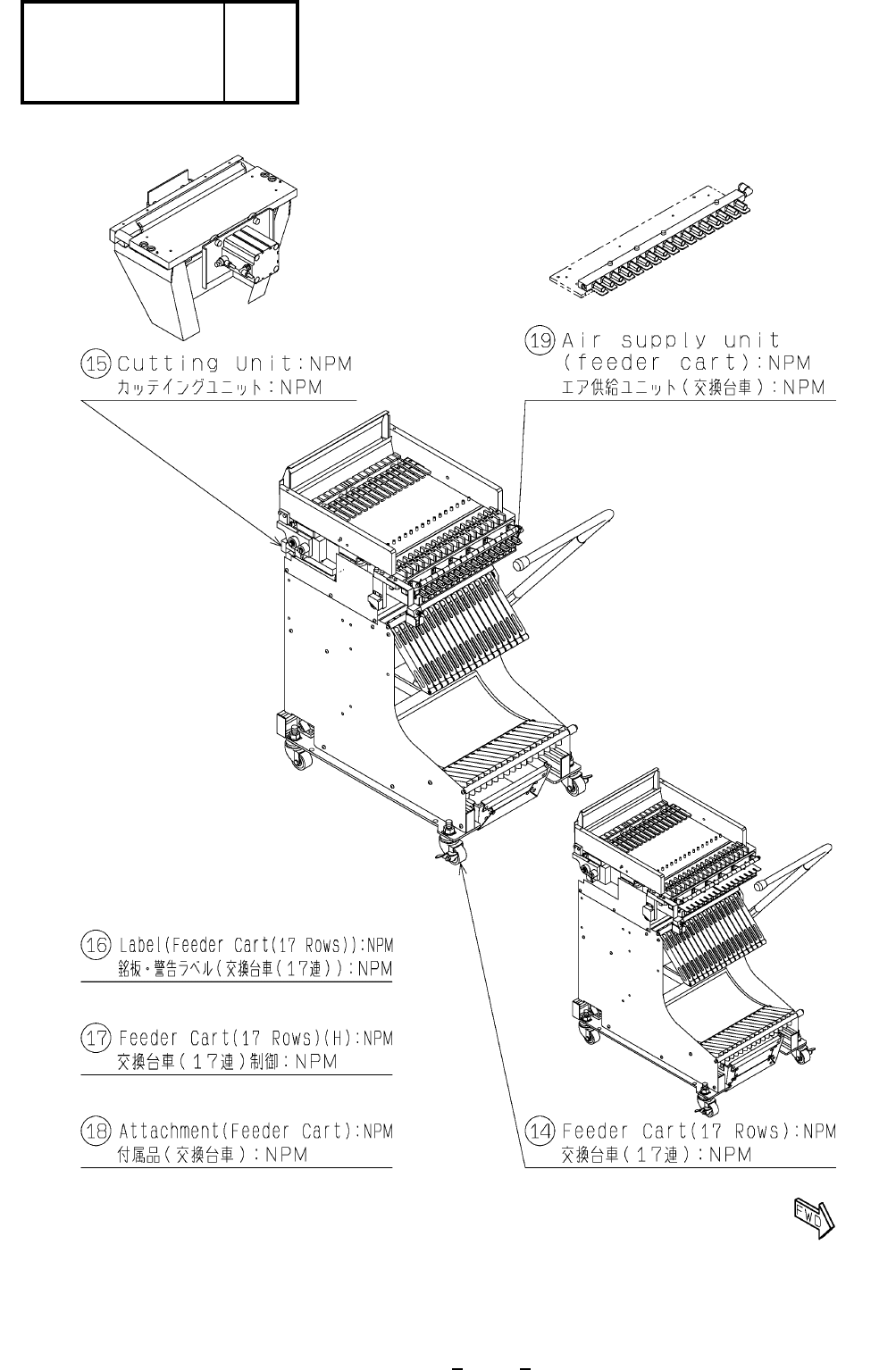 5 キットリスト KIT LIST Kit Name 番号 Part No. キット名 品番 No. Rank Q't y 数量 ランク 頁 Page 14 N610060938AA Feeder Cart(17 Rows):NPM 交換台車(17連):NPM 1 O69 15 N610073094AA Cutting Unit:NPM カッテイングユニット:NPM 1 O77 16 N610084837AA Label(…