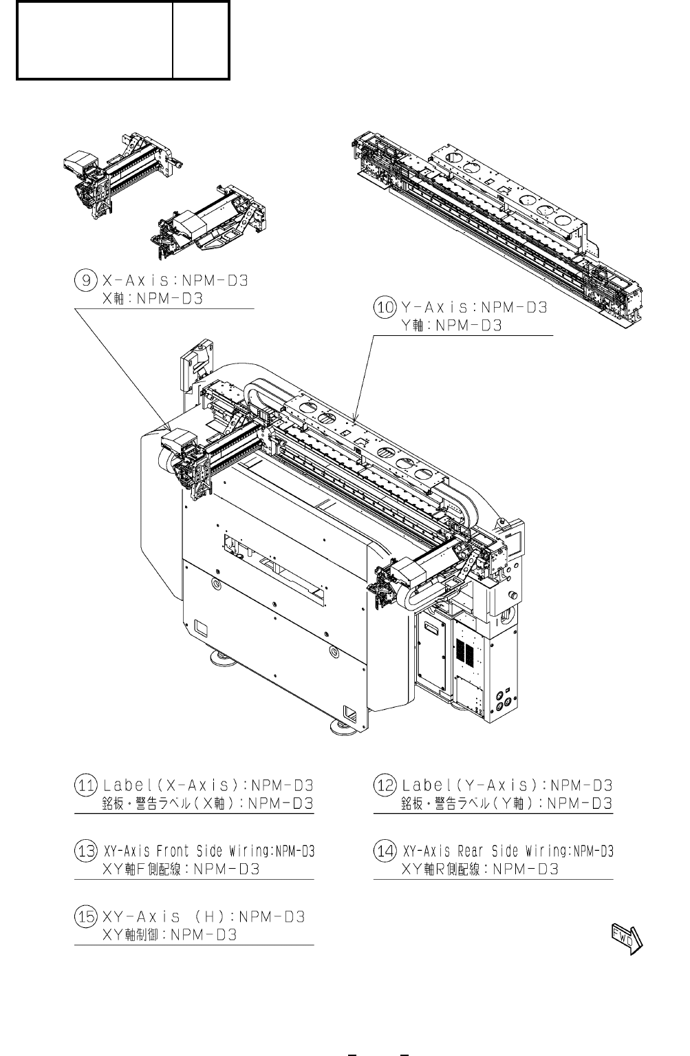 2 キットリスト KIT LIST Kit Name 番号 Part No. キット名 品番 No. Rank Q't y 数量 ランク 頁 Page 9 N610160756AA X-Ax is :NPM-D3 X軸:NPM-D3 1 S31 10 N610160757AA Y-Axis:NPM-D3 Y軸:NPM-D3 1 S39 11 N610162270AA Label(X-Ax is ):NPM-D3 銘板・警告…