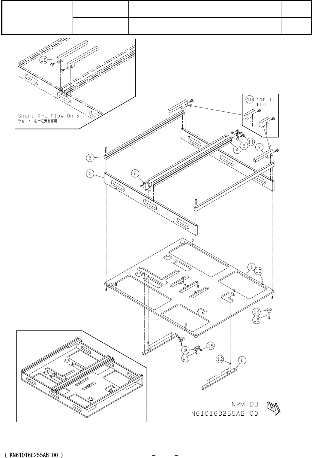 128 下受ピンセット治具:NPM -D3 Support P in Setting J ig:NPM -D3 パーツレイアウト Kit No. キット品番 Kit Name キット名称 N610168255AB セクションNo. PARTS LA YOUT Sectio n No. O409